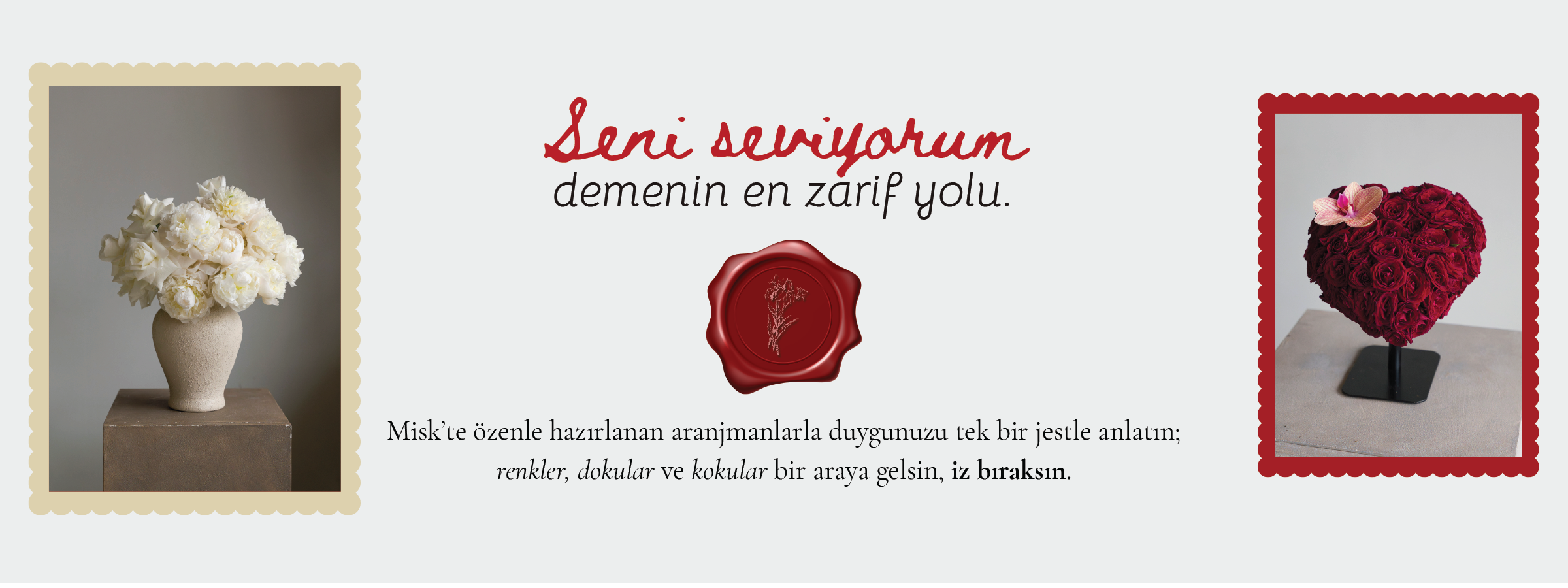 Misk, çiçeklerle dolu bir nefes alanı. Görürsün, koklarsın, her çiçekte başka dünyalara açılırsın. Özel buketleri, doğal mumları ve atölyeleriyle her gelişinde taptaze çıktığın bi’ yer. Hoş geldin.